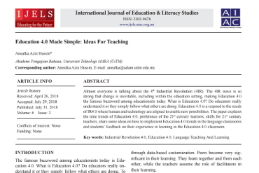 Aşağıdaki makale, eğitim 4.0'a dayalı 9 eğilimi ve sınıf bağlamlarında uygulama yollarını sunmaktadır.